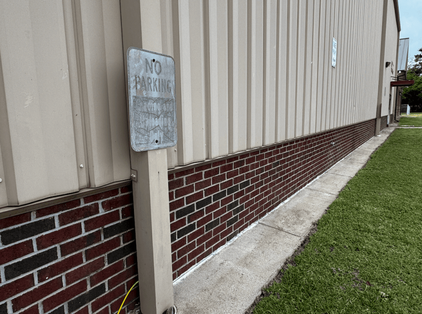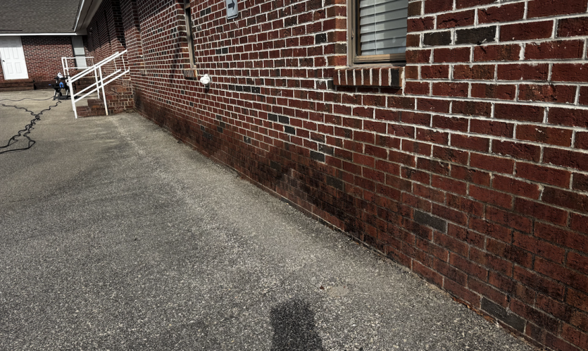 교회 벽에 찌든 때를 물청소 하였습니다.
