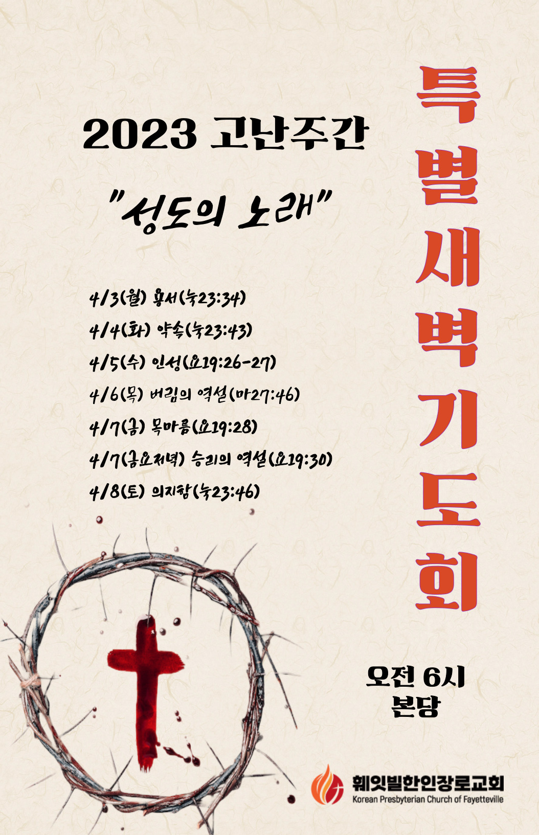 고난주간 특별새벽기도회 페이지 정보 작성자 관리자 댓글 댓글 0건 조회Hit 922회 작성일Date 24-06-02 22:55 본문 ㅇㅇ 목록 이전글2023 사랑방 찬양대회 24.06.02 다음글2023 선교 세미낭 24.06.02 댓글 0 댓글목록 등록된 댓글이 없습니다.