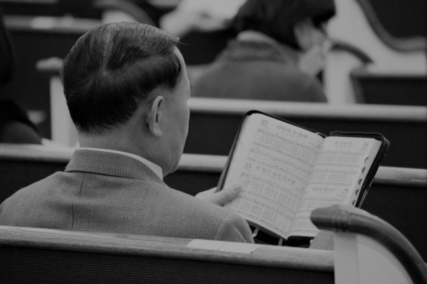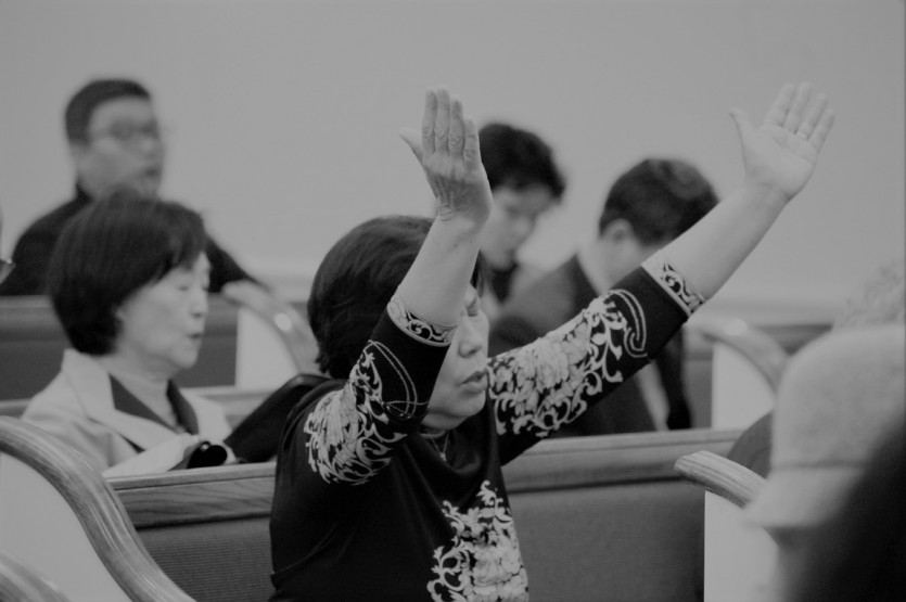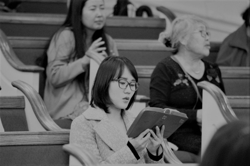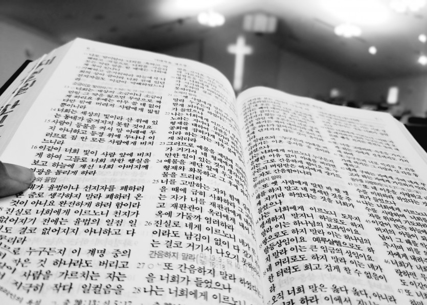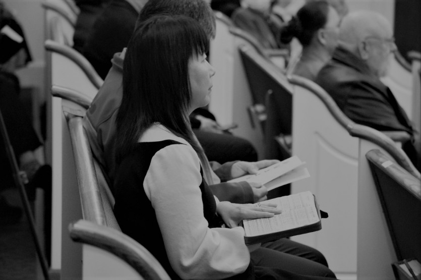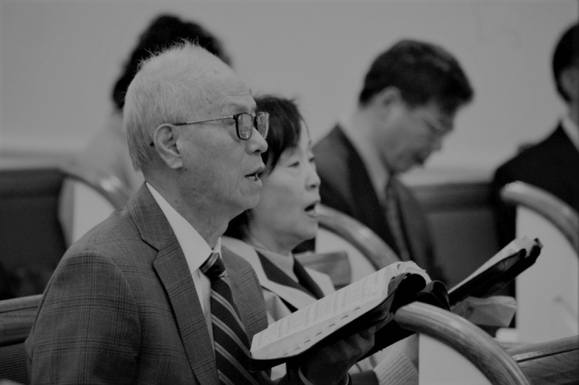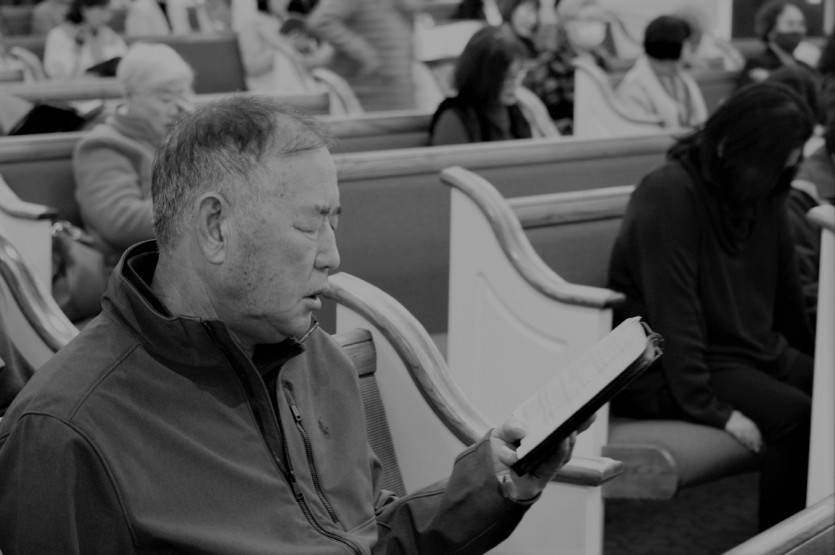 두 손으로 받쳐 든 성경책과 찬송가의 무게로 전해지며