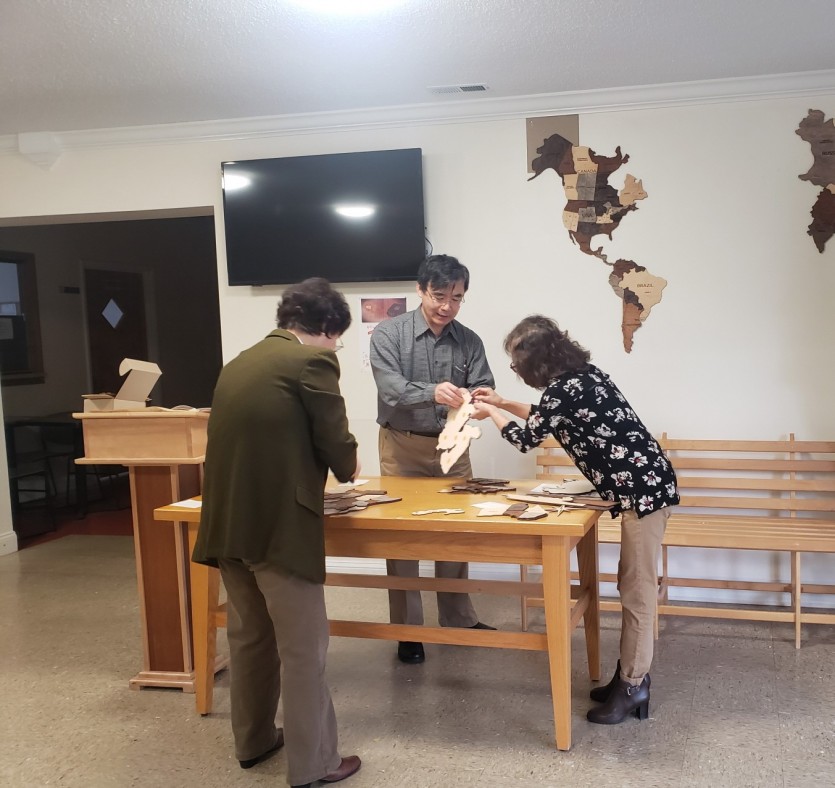 교회 중앙 현관 로비 세계지도& 모니터