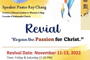 "Regain the Passion FOR Christ." Speaker : Pastor Ray Cha..