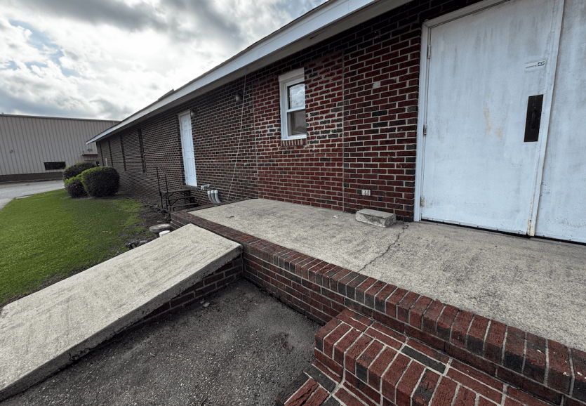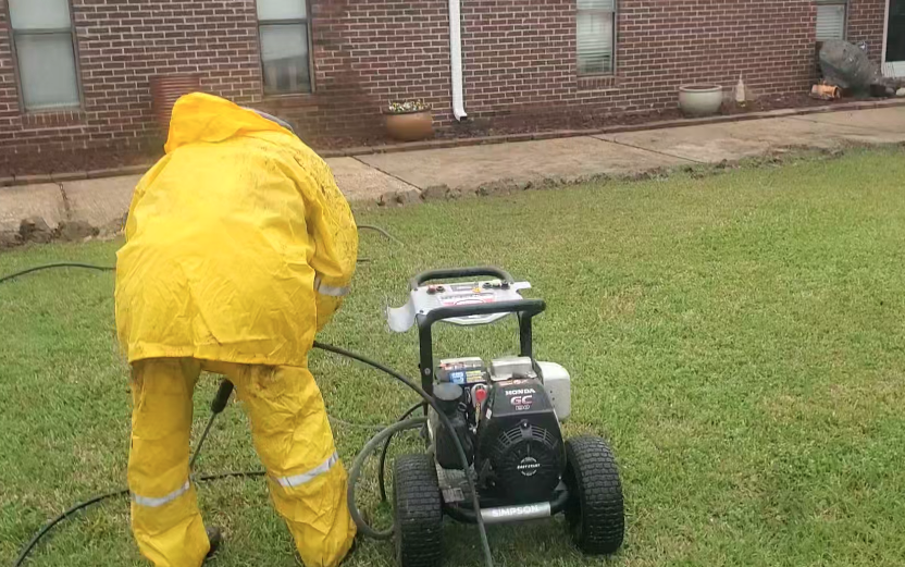 교회 벽에 찌든 때를 물청소 하였습니다.