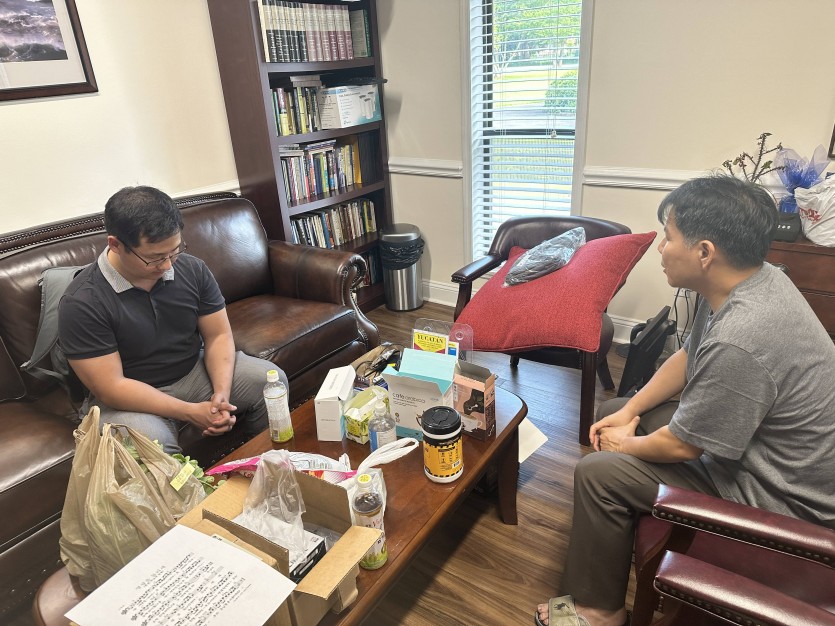 고향 오하이오로 떠나는 송소리 형제를 위해 담임목사님이 친히 기도해 주셨습니다.