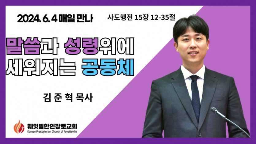 사도행전 15장 12-35절 "말씀과 성령위에 세워지는 공동체" 김준혁 목사